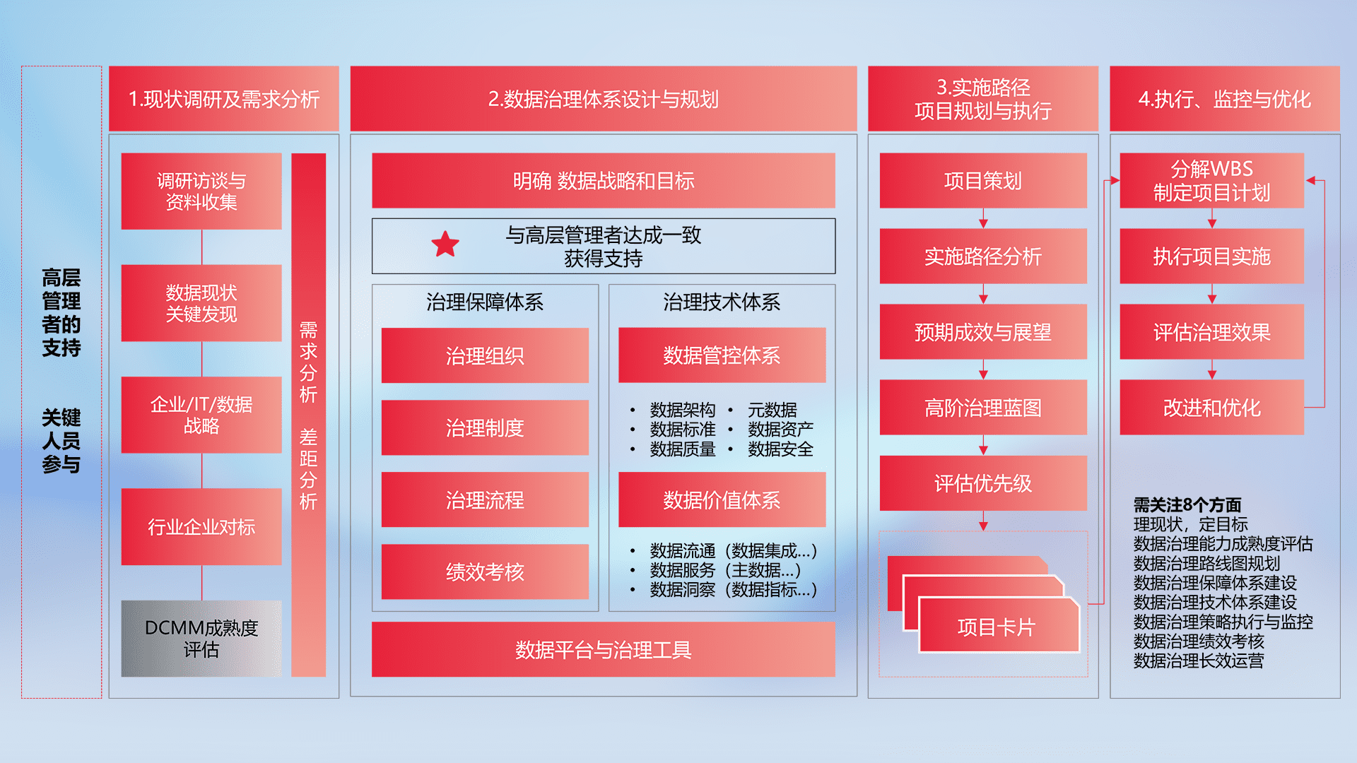 制定并执行统一的数据标准,,,规范数据定义和格式,,,,消除冗余和不一致性,,,实现跨部门和跨系统的数据一致性,,,为企业提供标准化的数据基础。。。。